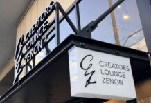 黄色のテント看板がちょっとレトロでいい感じ。看板のモチーフは「長崎くんち」の龍踊り(じゃおどり)が描かれています。