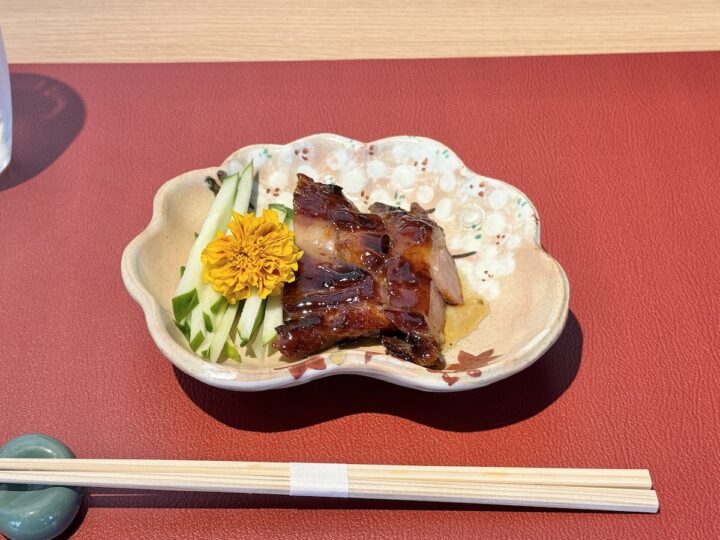 最初に運ばれてきたのは、艶やかな照りをまとった“トロ叉焼”。ひと口噛めば、ふわっと柔らかく、肉の旨みがじんわり広がります。甘辛ダレは濃すぎず、品のある味わい。添えられたキュウリと一緒に食べると、さっぱりと箸が進みます。