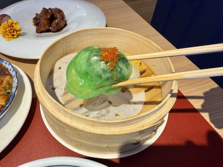 ホタテとうみょうの蒸し餃子(黒トリュフ入り)は、皮がぷるんと繊細で中はぎっしりジューシー。黒トリュフの香りがふわっと鼻に抜けて、贅沢な余韻を残します。海老蒸し餃子は、ぷりっぷりの海老が主役。素材の良さをダイレクトに感じられ、香港飲茶らしい王道の味わいです。