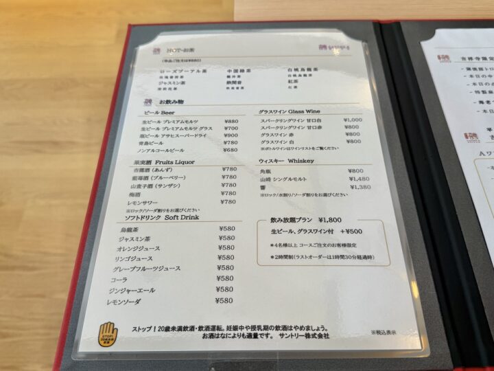 メニュー内容は銀座店とあまり変わりませんが、吉祥寺店のほうが飲茶メニューが多くなる予定。