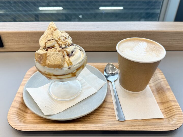 「黒蜜きなこわらび餅ソフトクリームパフェ」は、富士高原牧場「いでぼく」の生乳を75%以上使用した無添加ソフトクリームを贅沢に使用。濃厚でコクのあるミルク感がありながら、後味は驚くほどさっぱり。甘さは控えめで上品。もちもちのわらび餅、香ばしいきなこ、黒蜜の風味がとろけるように溶け合い、和の味わいとミルキーなソフトが絶妙なバランス。素材の良さを感じられる、癒しの一品です。