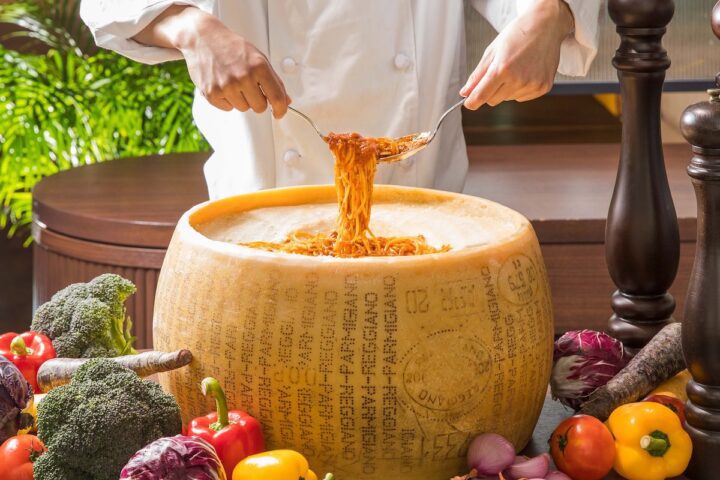スイーツだけでなく、食事メニューも充実。SORAEで人気の“オニオンカレー”や、目の前で仕上げる“パルミジャーノレッジャーノホールチーズで作るクリームパスタ”をはじめ、サラダやフライドチキンなどセイボリーメニューも揃います。甘いスイーツとしっかりした食事を組み合わせることで、ブッフェでありながらディナーとしても楽しめる内容です。