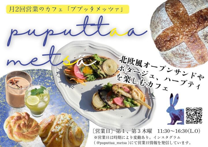 2025年9月4日(木)、吉祥寺の東急裏エリア、通称「北欧通り」の大正通りに旅する料理家が手掛ける北欧風オープンサンドとシナモンロールのカフェ「puputtaa metsä(ププッタメッツァ)」がオープンします。営業は月に2回。