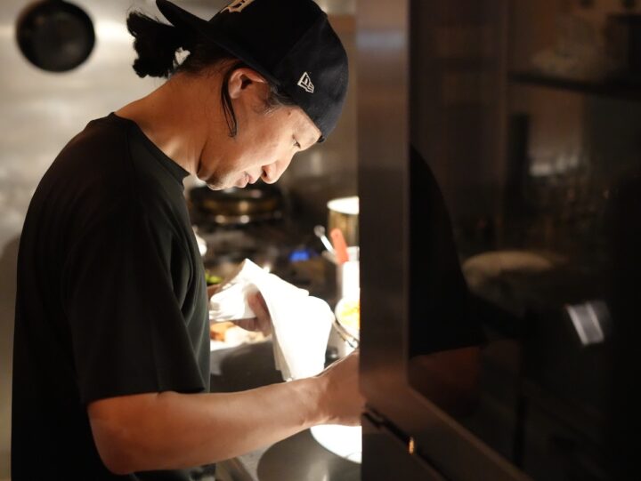 扉側の黒い壁や新たに設けられた仕切りなど、細部に至るまでの改装は、単なる内装刷新にとどまりません。最大のこだわりは、「料理と空間を一体化させる」 という発想。皿の上の世界観と店内の雰囲気が響き合うことで、食事そのものがより豊かに感じられる空間へと生まれ変わったのです。