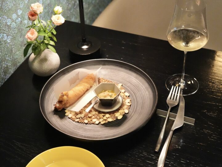 いただくのは2回目なのですが、これ大好き。見た目はまるでアート。細いカダイフに包まれた海老をひと口かじると、カリッ!サクサクッ!!と軽快な音。