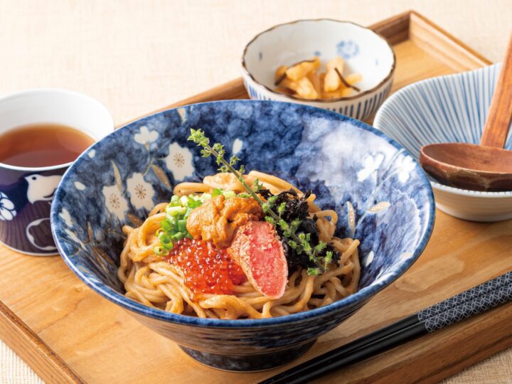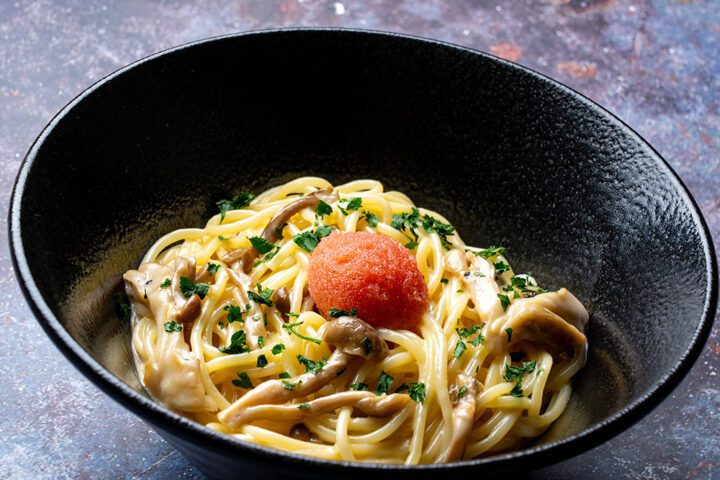 もちもち食感の生パスタに、たらこと雲丹を合わせた濃厚なソースをたっぷりと絡め、上には雲丹といくら、香ばしい炙りたらこを贅沢に盛り付け。たらこと雲丹の甘みと磯の香り、プチプチと弾けるイクラの食感と塩味が重なり合い、シンプルなたらこパスタが一気にごちそう感あふれる特別な料理に。