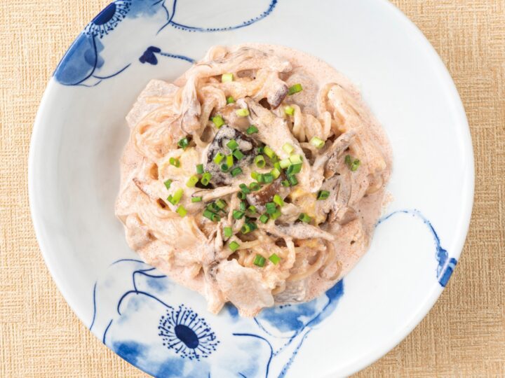秋のキノコとたらこのクリームパスタ