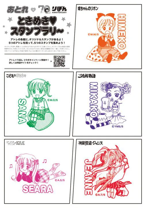 アトレ×りぼん70周年のキャンペーンを記念してスタンプラリーを開催します。5つのアトレを回ると、各作品の5つのスタンプを集めることができます。