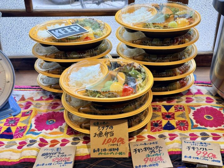 そしてやはり嬉しいのが惣菜や弁当のラインナップも充実な点。あのシフク食堂のカレーや魚のお弁当に季節野菜を使った副菜が揃います。お値段は900円台(税込で1000円前後)からと手頃ながら、見た目のボリュームは抜群。