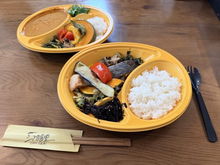今回購入したのは、「シフクのお魚弁当」(1080円税込)と「チキンカレー」(1069円税込)。チキンカレーは今や行列店となったシフク食堂の定番人気メニュー。まさかここであのカレーを並ばずに買って帰ることができるとは…
