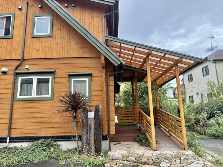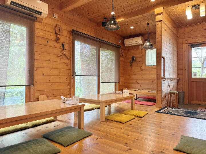同店はオーナー自宅を兼ねたログハウスのお店。外観からして木の温もりが漂い、扉を開けるとさらに柔らかなベージュの木目に包まれた空間が広がります。