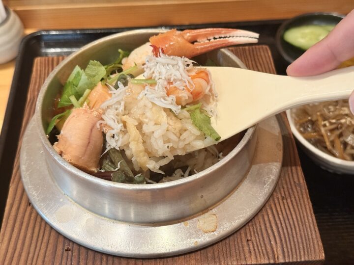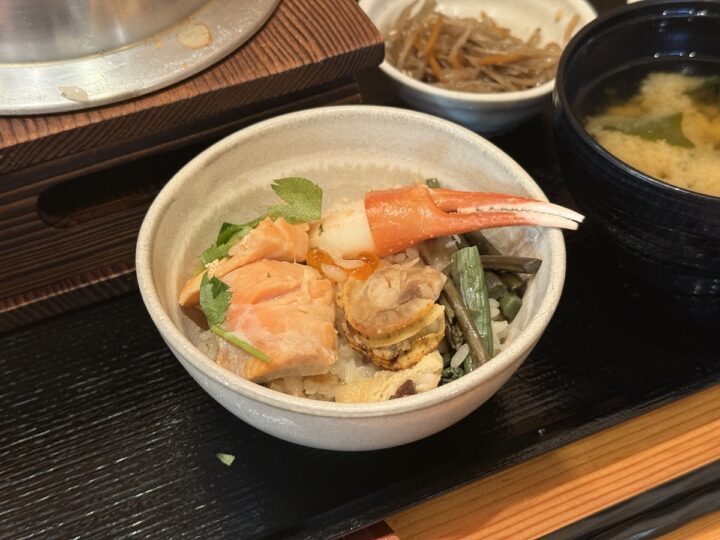 イクラは鮮やかな彩りを添え、口に入れると弾けるような旨みが広がります。大げさでもなく“贅沢すぎる釜めし”でした。
