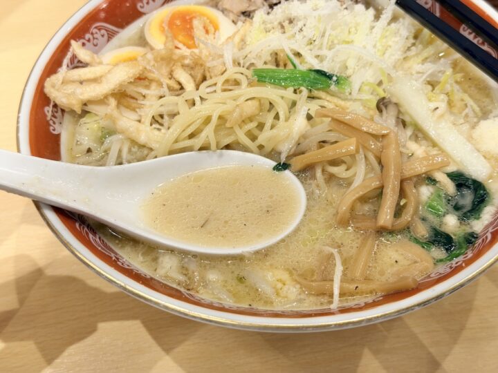 スープは塩スープの出汁と北海道牛乳により、とてもクリーミーでまろやかな仕上がり。一口飲むと、味噌の香りや風味が豊かに広がり、心も体も温まるような感覚ですわ。