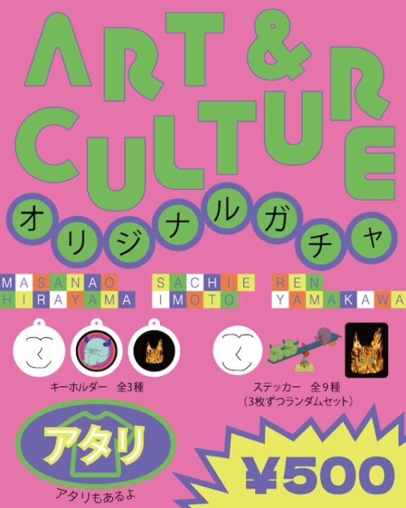 内容:3名のクリエイターによるステッカーやキーホルダー入りガチャ。1回500円。当たりでオリジナルTシャツプレゼント(後日郵送)。