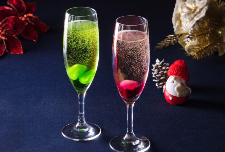 また、お食事とともに楽しめる赤と緑の華やかな2色のスパークリングカクテルが、特別なひとときを演出します。