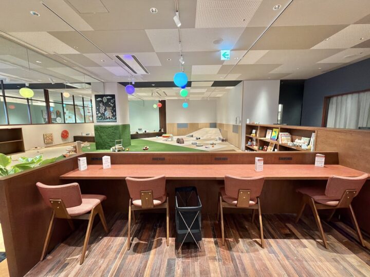 実際に見てみると、ラウンジエリアとは適度な距離感がありつつ、子どもたちが楽しそうに過ごせる工夫が満載。ここが地域のママ・パパの新たなコミュニティ拠点になりそうな予感。