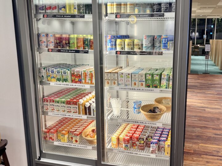 名物のフリースナック&ドリンクコーナー。 その数、約80種類!