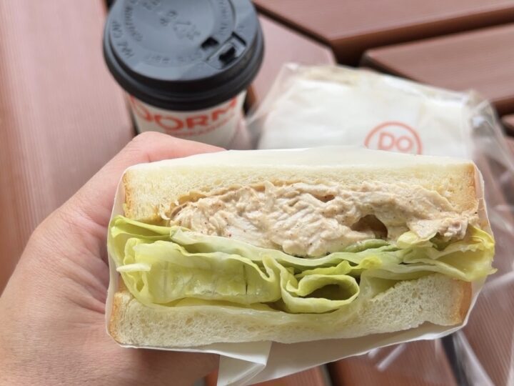 チキンはしっとりとしていてパサつきゼロ。ピリッとしたスパイスの刺激が、マイルドなマヨネーズソースと絶妙に絡み合い、食欲をそそる味わい。 パンもしっとりふわふわで、具材との一体感が素晴らしい。