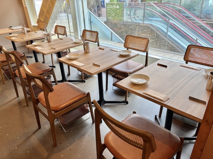 お店の場所はコピス吉祥寺のA館3階。 一歩足を踏み入れると、そこは明るく開放的な空間。木の温もりを感じるテーブルに、ゆったりとしたレザー調のチェア。大きな窓からは自然光が降り注ぎ、まさに「都会のオアシス」といった雰囲気。