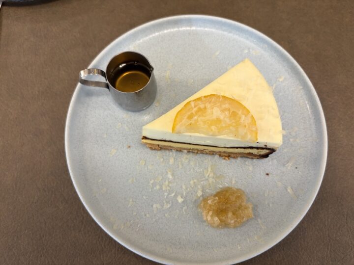 付属のハチミツをたら〜りとかけて一口…!! 濃厚なのに爽やか!レモンの酸味とチーズのコク、そしてハチミツの甘みが口の中で完璧なハーモニーを奏でる。ワインにも合いそうな大人のデザートでした。