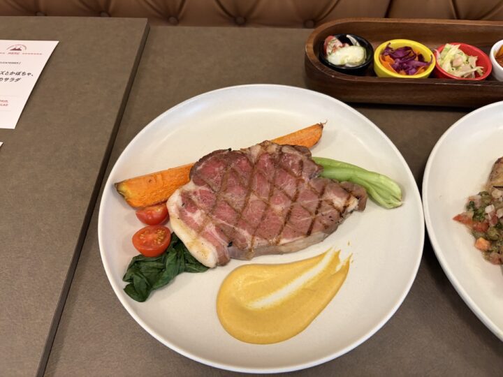 そして、お肉もしっかり楽しみたい方には 「厳選Beefのグリルステーキ クラシックマッシュポテト添え」(2,880円)。