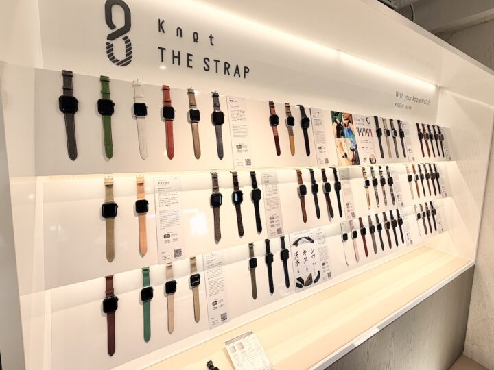 専用アダプターを使えば、Knotで取り扱う全てのベルトがApple Watchに取り付け可能です。「最初はApple Watchのベルト目的で来店されて、その後“せっかくだから本体もKnotで一本作ろうかな”とリピーターになってくださるケースも多いです」とスタッフさん。