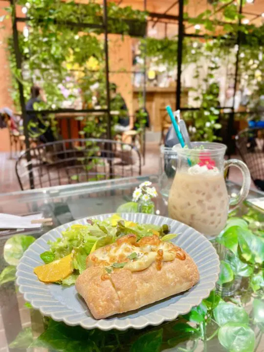 同店は、青山フラワーマーケットの運営するカフェ。空間いっぱいに広がるグリーンと、自然の中に咲いているように飾られた旬のお花で象られる温室型カフェ。アトレ内に突如現れるグリーンのトンネルの中でお茶することができ、人気を博していました。