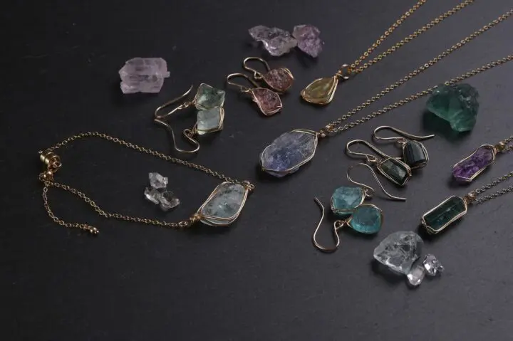 最大の特徴は、「ワイヤーラッピング」という技法で、石に穴を空けず、ワイヤーで包み込むように固定することで、「そのままの形で輝かせる」という、天然石への深いリスペクトの気持ちをアートのようにジュエリーへと昇華します。