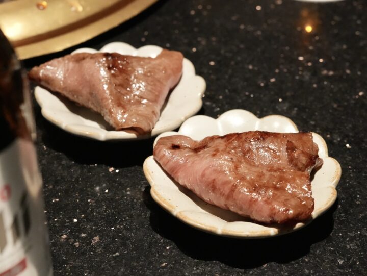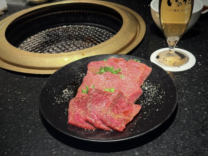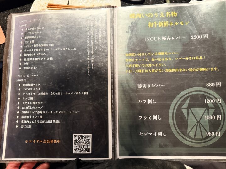 衝撃はまだ終わりません。続いていただいたのは、「生切りINOUEロース」(1280円)と「INOUE熟成ハラミ」(2200円)。