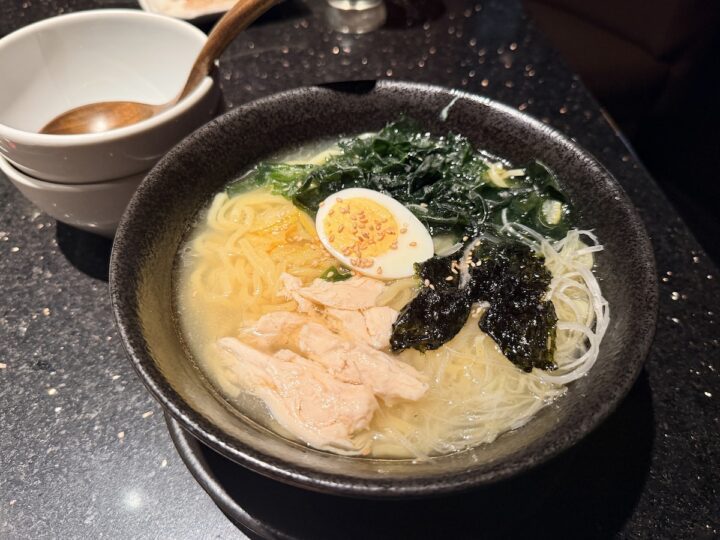 鶏の旨味が凝縮された優しい塩スープに、柚子の酸味が効いていて、焼肉の後の口内を完璧にリセットしてくれます。麺はツルツルとした喉越しで、お腹いっぱいでも別腹で入ってしまう一杯でした。