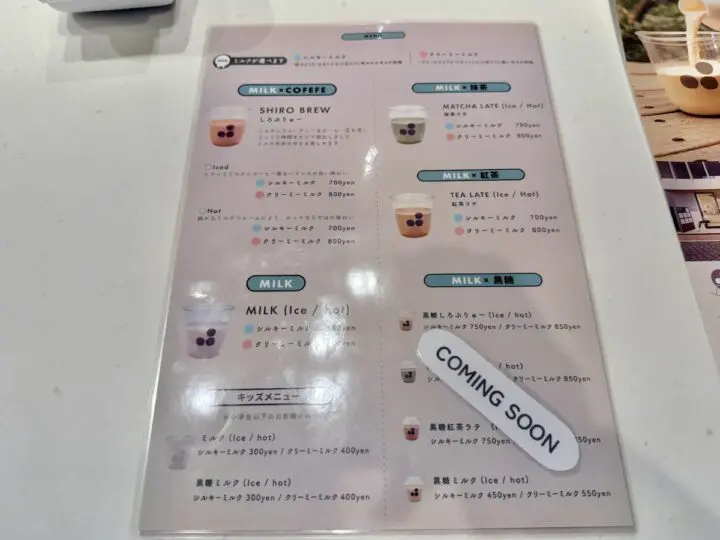 同店はミルク本来の自然な甘さと質感を活かしたメニューを展開。看板メニューの“しろぶりゅー(コーヒー豆を低温の牛乳でじっくり抽出して作る飲み物)”は、「カフェラテでは感じきれないミルクの美味しさ」を追求した、まさにミルクが主役の一杯です。