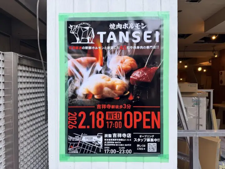 2026年2月18日(水)、吉祥寺駅徒歩3分の御殿山エリアに、「焼肉炭聖 吉祥寺店」がオープンします。
