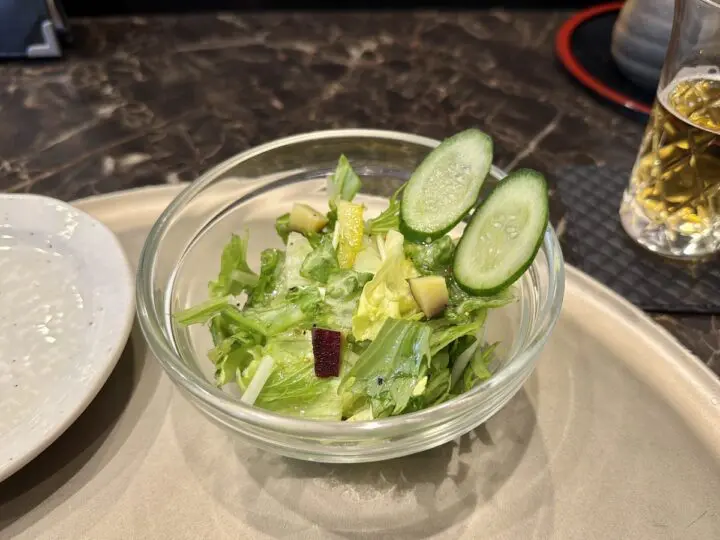 ドレッシングの程よい酸味が、これから始まる揚げ物への準備を整えてくれます。
