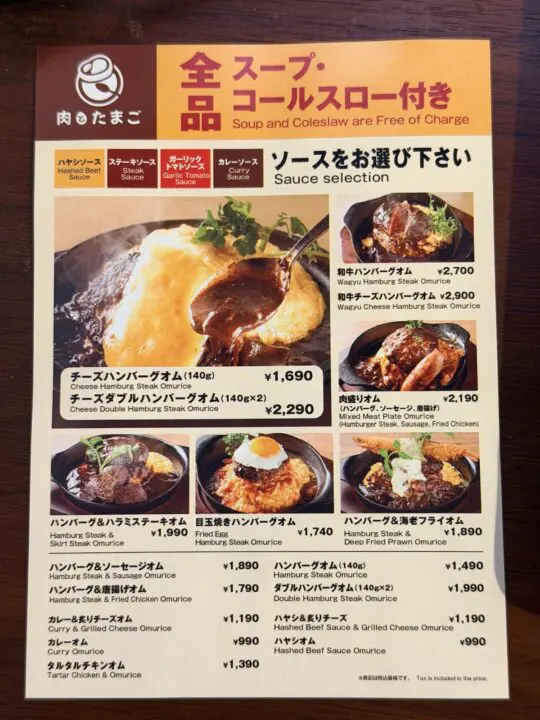 - 肉盛りオム (ハンバーグ、ソーセージ、唐揚げ):2,190円