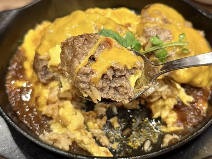 チーズの滝と肉汁の洪水!これが肉オムライスの極致