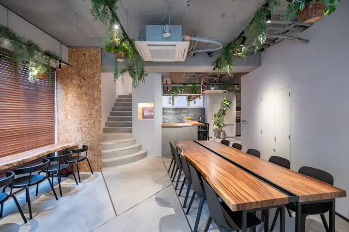 吉祥寺にコンクリートと木を基調としたコワーキングスペース兼会員制BARの「CoBREW KICHIJOJI」がオープン