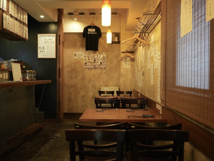 カウンターは一人ごはんや一人飲みにも最適だし、テーブル席は友人との語らいにぴったり。肩肘張らない居心地の良い空間。