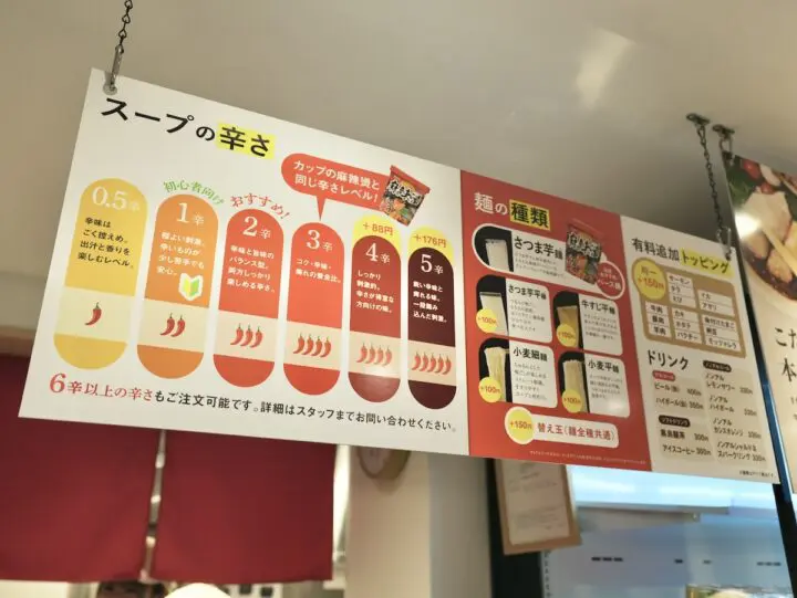 - スープの辛さ(初心者は1辛、辛いものが苦手なら0.5辛がおすすめ)