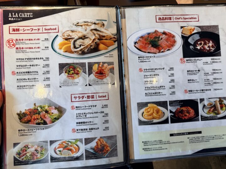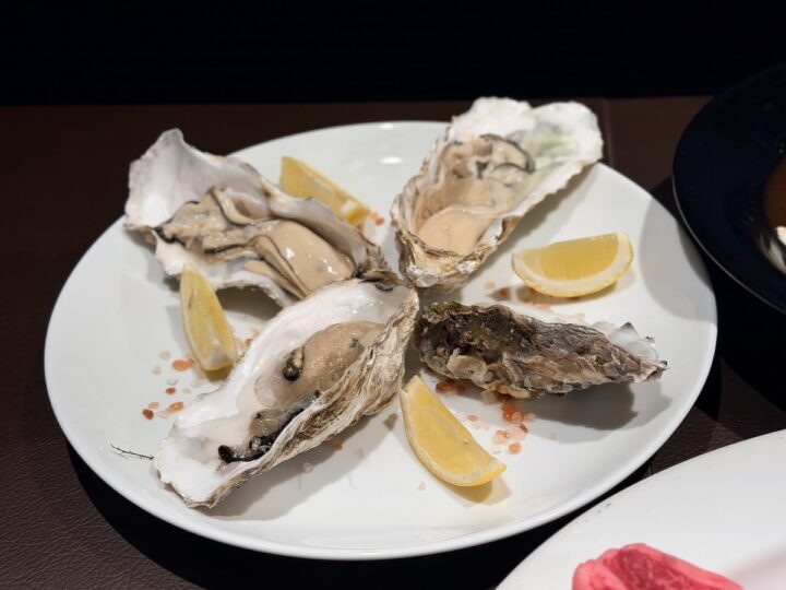 ステーキを最高の状態で提供するため、調理には20〜30分ほどかかります。その「待ち時間すらも楽しく過ごしてほしい」と、牡蠣やエビなどの一品メニューが大幅に拡充されているのも見逃せないポイント。