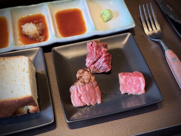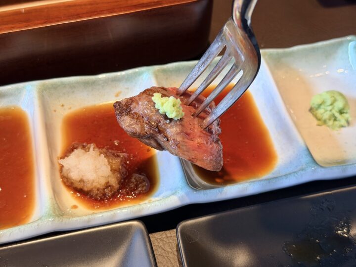 薬味には、わさび、大根おろし、専用のタレなどが用意されており、味変のバリエーションも無限大。特にわさびと醤油でいただくと、お肉の甘みがさらに引き立ちます。