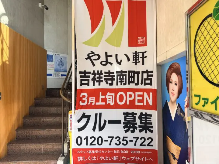2026年3月中旬、吉祥寺に定食レストラン「やよい軒 吉祥寺南町店」がオープンします。(写真は「3月上旬」と記載されていますが3月中旬予定)