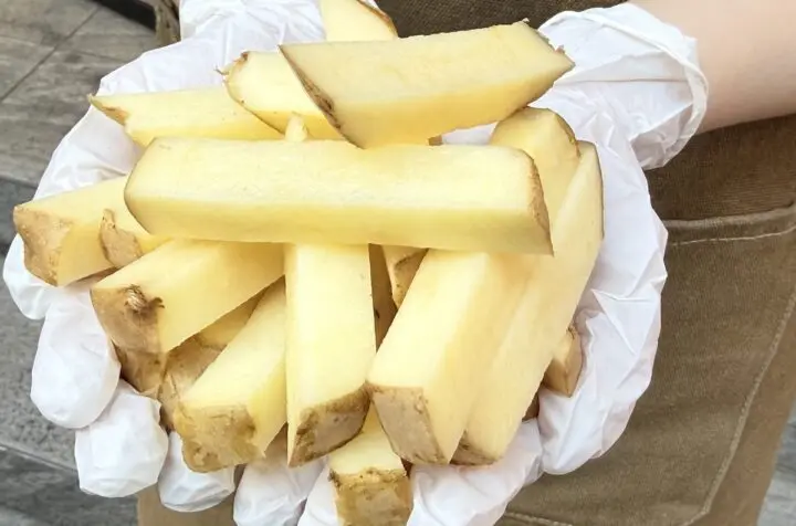 日本人の好みに合う最高の食感を目指し、たどり着いたのは「北海道産の厳選じゃがいも」と「本場の二度揚げ技術」の融合です。 ※シーズンに合わせてジャガイモの品種は変わります