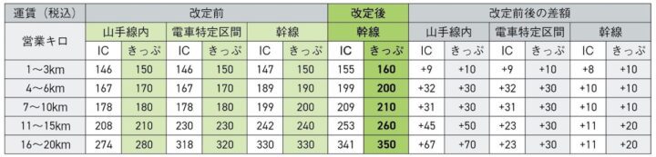 ちなみに改定前後の運賃はこちらで調べることができるので、気になる方はチェック→ 改定前後運賃検索サイト