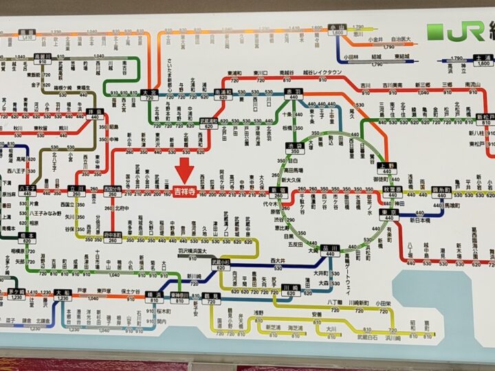例えば横浜駅へ行く場合、JRで行くなら「吉祥寺→新宿→横浜」であれば湘南新宿ラインが利用できて楽ですが、上記の表にあるとおり片道810円(きっぷ)。
