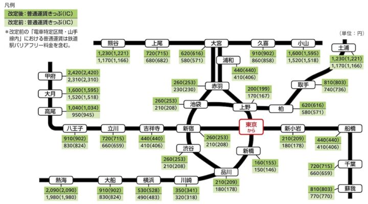 私鉄と比較して割安だった首都圏の運賃区分を撤廃したことにより、都心部の利用者ほど負担が重くなることに。
