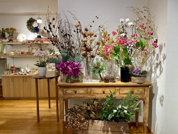 店主さんは、ヨーロッパでの在住経験が長く、ドイツやフランスで豊富な花の知識と技術を培ってきました。その経験を活かし、お客様一人ひとりの要望に合わせた「オンリーワン」の花を丁寧にヒアリングして制作してくれます。店内にはヨーロッパで直接買い付けてきた雑貨やアンティーク小物も並んでおり、お花と一緒に自分だけのお気に入りを見つける楽しさも。
