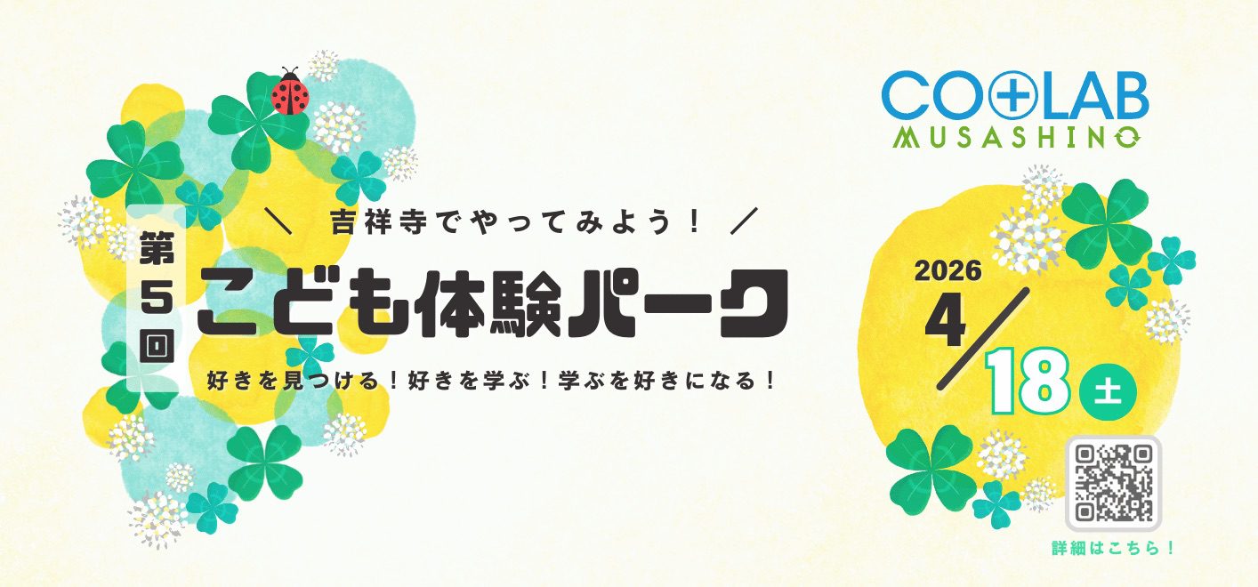 今回で5回目の開催となるこども体験パークは、2年ぶりに武蔵野公会堂での開催! ホールの舞台を使った俳優体験や合唱発表、オペラ体験をはじめ、ハンドメイドワークショップほかさまざまな体験企画、子育て相談など、屋外のピロティから建物まるごと、たくさんのブースが出店します! お子様から大人まで、1日中楽しめる! いろいろなことにチャレンジして、自分だけの”好き”を見つけよう! ご家族で、お友達同士で、ぜひお立ち寄りください。 ■開催日時 2026年4月18日(土)10:30~16:00(予定) 各ワークショップは15:30最終受付※材料なくなり次第終了 出店・企画の詳細は順次公開予定 ■開催場所 武蔵野公会堂(〒180-0003 東京都武蔵野市吉祥寺南町1丁目6番22号) JR中央線・京王井の頭線「吉祥寺駅」南口より徒歩2分 ■入場料 無料(ワークショップ等は一部有料) ■認定 武蔵野市 連携促進事業「CO+LAB MUSASHINO(コラボむさしの)」認定事業 ■後援 武蔵野市 ■主催 株式会社Office Breath